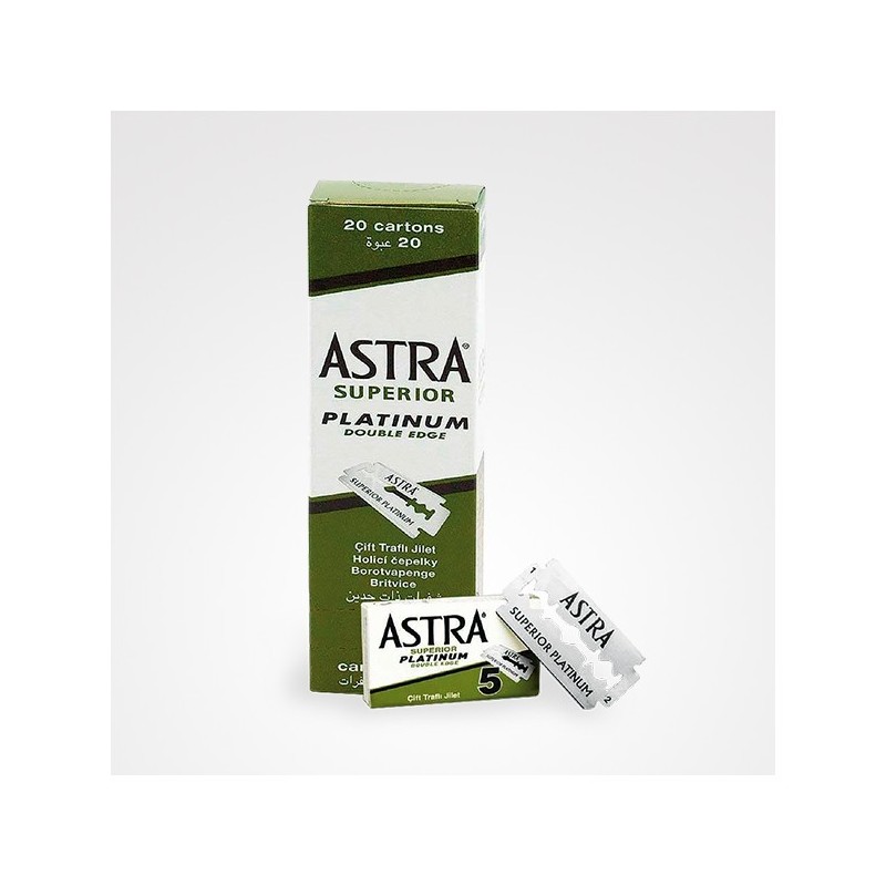 Cuchillas Astra "Superior Platinum" de doble hoja, fabricadas en San Petersburgo con acero inoxidable de la más alta calidad. Fabricadas por Gillette, son consideradas una de las mejores maquinillas de afeitar para el afeitado.