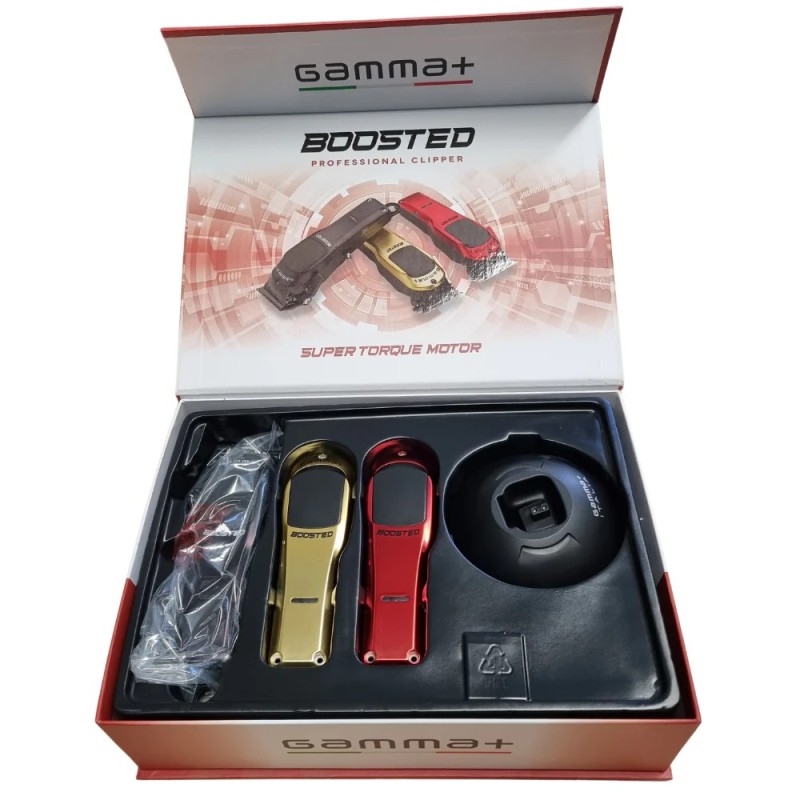 Gamma Piu no solo cuida su tecnología si no que también ha creado una maquinilla de corte con un diseño espectacular que además puedes cambiar a tu gusto con un solo click, la máquina corta pelos incluye 3 carcasas y 3 palancas para combinar los diferentes colores , Oro, rojo y negro.
